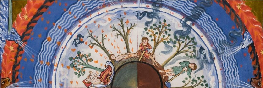 In Cause et Cure, Hildegard identifies the causes of a great many disorders. All diseases share a common origin: original sin, which introduced corruption into the human body. The forbidden fruit poisoned Adam’s body, rendering his flesh ulcerated and pierced. These ulcers and perforations generate turbulence and moisture of vapor within humans, from which phlegm arises and coagulates, bringing various illnesses upon the human body.[8] In addition to this common cause—both spiritual and physical—Hildegard also attributes diseases to more specific factors. Many pathologies arise from an imbalance among humidum, siccum, tepidum, and spuma/spumaticum within the organism.