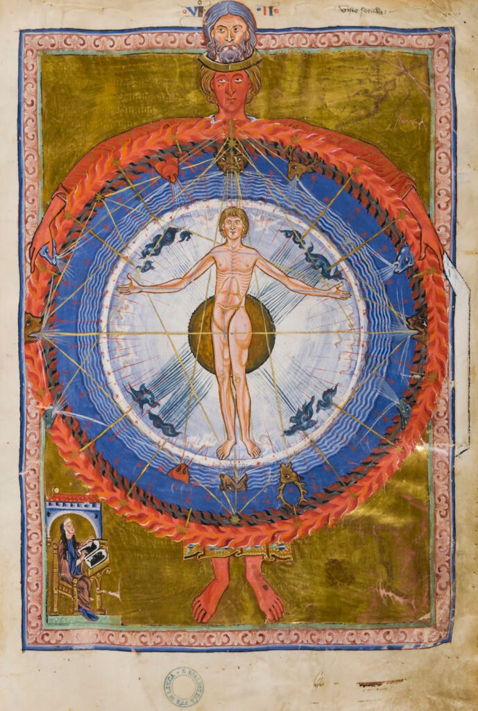 The cosmological sections of the Physica and Cause et Cure articulate the spiritual foundation of Hildegard’s medicine: the intrinsic affinity among all of God’s creatures. In the Praefatio to Book I of the Physica, the fibrous tissues of trees are likened to the veins of the human body, stones to bones and nails, the moisture of stones to bone marrow, and herbs to hair (if fine and easily digestible), to sweat (if dry and heavy for digestion), or to excretions (if poisonous).[5] Furthermore, Book I of Cause et Cure explains that the four elements constituting the cosmos—air, water, earth and fire—are the same as those that compose the human being and make vital functions possible.[6] This close connection between the cosmos and the human body means that the body can be influenced, and thus healed, by natural entities.