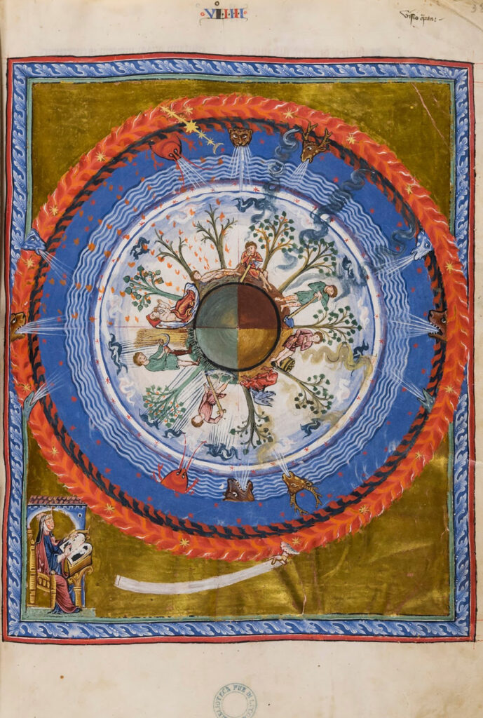 Hildegard’s medical knowledge derives from a variety of sources. A primary role was undoubtedly played by her direct experience in the infirmaries of Disibodenberg and Rupertsberg, where she worked from a young age.[3] Her texts, however, also reveal a solid theoretical education: Hildegard made extensive use of the Summarium Heinrici, an eleventh-century Latin encyclopedic compendium used as a teaching text in monastic schools throughout the Germanic region, as well as of medical works from the libraries of Rupertsberg and the Abbey of Trier.[4]