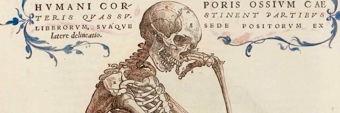 Vivitur ingenio, caetera mortis erunt (“One lives through the spirit, everything else is mortal”) – this epigraph is engraved on a pedestal [Figure 1] beneath a skeleton resting its head in its hands, as if lost in thought like a person still alive. For Andreas Vesalius (1514-1564), this image proved prophetic: he remains a central figure in the development of anatomy in early modern Europe, often associated with the so-called “scientific revolution”. However, it is important to view this revolution less as a sudden break and more as a gradual process. Recent research underscores the continued interest in Vesalius’ life and works.[1]