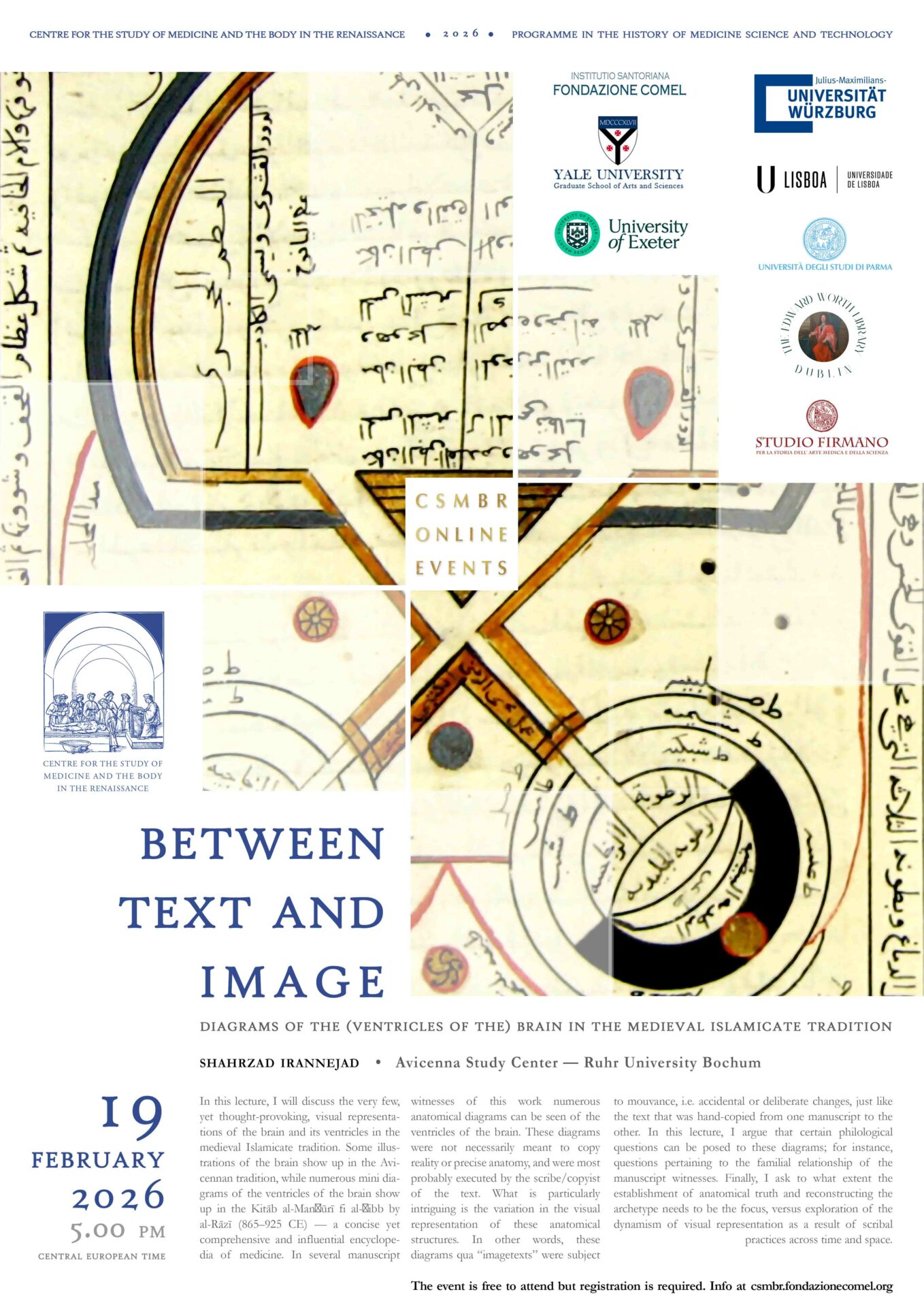 In this lecture, I will discuss the very few, yet thought-provoking, visual representations of the brain and its ventricles in the medieval Islamicate tradition. Some illustrations of the brain show up in the Avicennan tradition, while numerous mini diagrams of the ventricles of the brain show up in the Kitāb al-Manṣūrī fi al-Ṭibb by al-Rāzī (865–925 CE) — a concise yet comprehensive and influential encyclopedia of medicine.